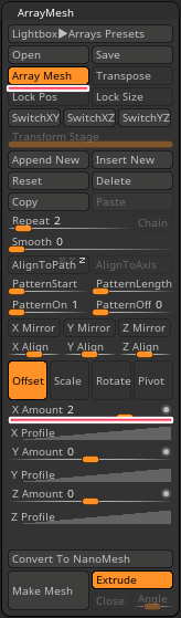 - ArrayMeshをONにし、デフォルトの設定のままX Amountを2にします。