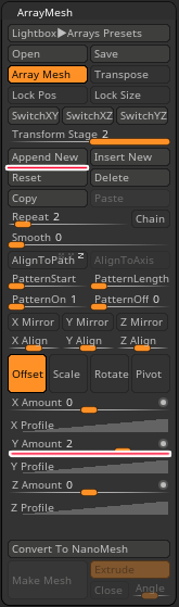 - Append Newを押してステージを追加し、今度はY Amountを2にします。