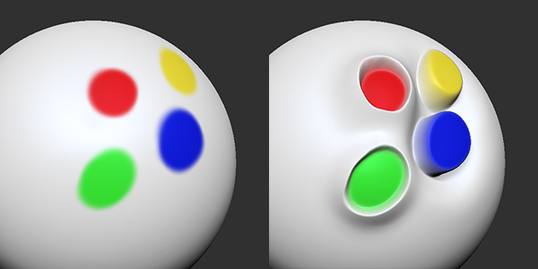 スカルプト中に通常では見えない部分のディテールやフォームを保持することができます。薄いモデルの片面をスカルプトする際に非常に便利です。