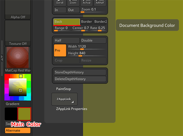 Document>Back下のRangeスライダーを0.5→0に設定します