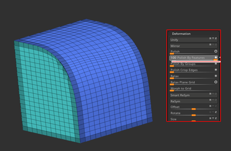 特徴を維持しつつポリッシュをかけます。これ以上トポロジーが変化しないぐらいまで何度か適用します。