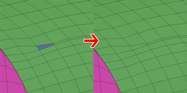 ベベルブラシやライブブーリアンを行った際にどうしてもで出来てしまう歪んだトポロジーを修正する方法を考えてみました。
