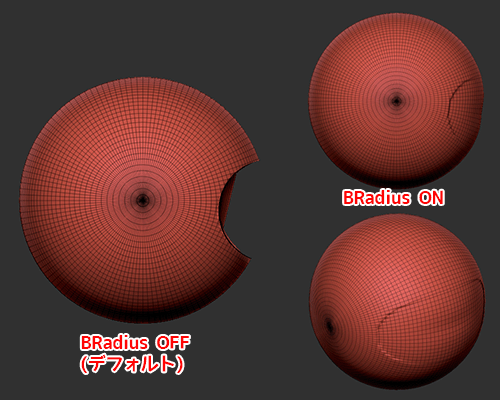 有効にすると、ブラシのサイズとメッシュのカメラからの距離に応じてポリゴンが部分的にクリップされます