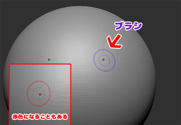 ZBrush Core Miniはみんなの手の代わりにブラシというこの紫色の円(たまに赤色にもなる)がCGの形を作ってくれます。えんぴつや絵の具の筆を想像してもいいかもしれません。