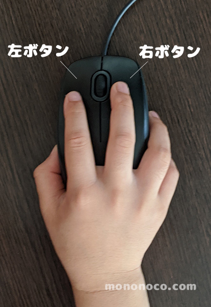 右ききの人は、左ボタンの上に人差し指が、右ボタンの上に中指が来るように持つと使いやすいです。