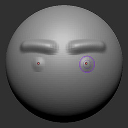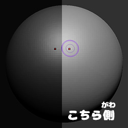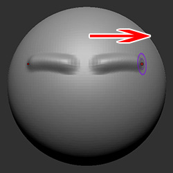 - ブラシを球体の右側まで移動します。