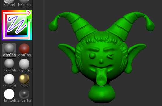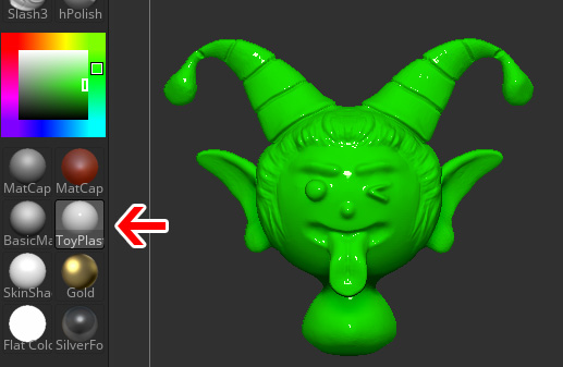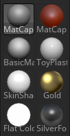 ZBrushCoreMiniには8種類のマテリアルが用意されています。画面の左側に並んでいます