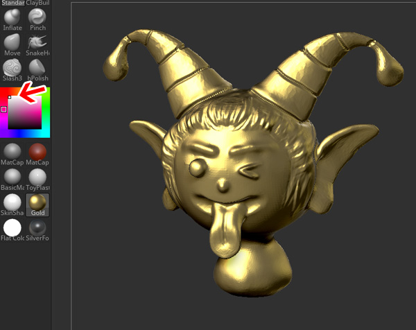ZBrush Core Miniではテクスチャを貼ることは出来ないので、カラーだけ覚えておいてください