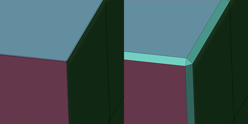 エッジの片側又は両側に定義して、部分的に丸みを帯びる又は全く丸みのない折り目をつけることができます