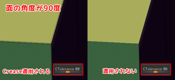 Creaseを適用した際に、ここで設定した角度より大きいの角度の箇所にCreaseが適用されます。