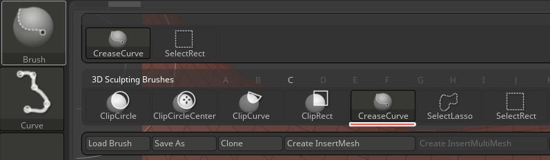 CTRL+SHIFT+BrushアイコンをクリックしCreaseCurveを選択します。