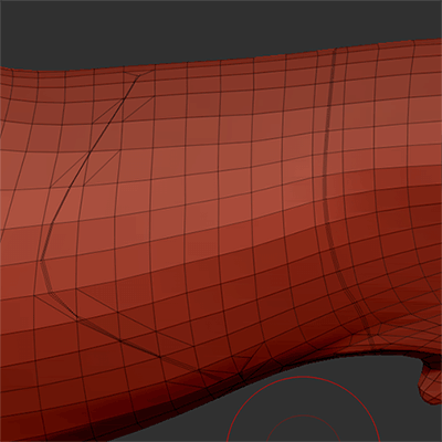 このブラシを使うと描画されたカーブに沿ってポリゴンをスライスしつつCreaseを適用することができます。