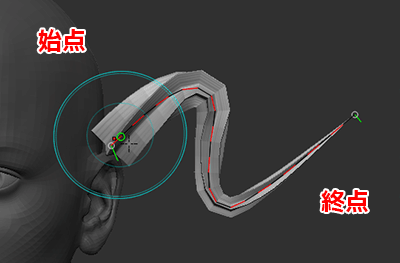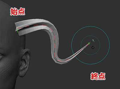 - CTRLキーを押すと、カーブの一部をカーブを軸に回転(ねじる)させることが出来ます。