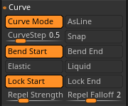 カーブモードのブラシがサーフェスにどれだけ近づけるかを制御します。スライダーを高くすると、カーブの始点の部分がサーフェスの外側に反発します。