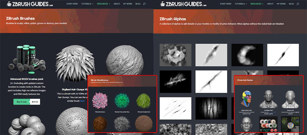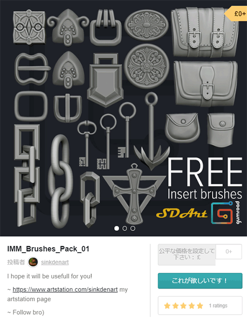 - XMD 196 Free ZBrush Brushes!(2017年4月時点でフリーで提供されている196種のブラシのセット)