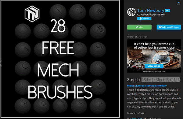 - 3.8 メカ作りに!28 Free Mech Brushes by Tom Newbury