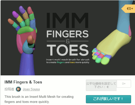 - Free Monster Mash Starter Kit!(9種のIMMブラシに94パーツ入ったモンスター作成に便利なベースメッシュ)