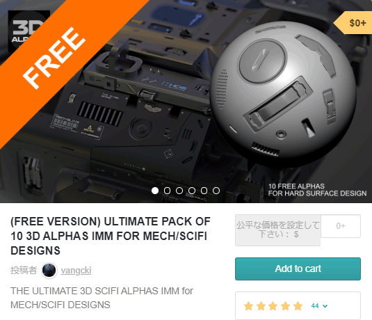 - 4.27 解像度不要のハードサーフェス用IMM! (FREE VERSION) ULTIMATE PACK OF 10 3D ALPHAS IMM FOR MECH/SCIFI DESIGNS by vangcki
