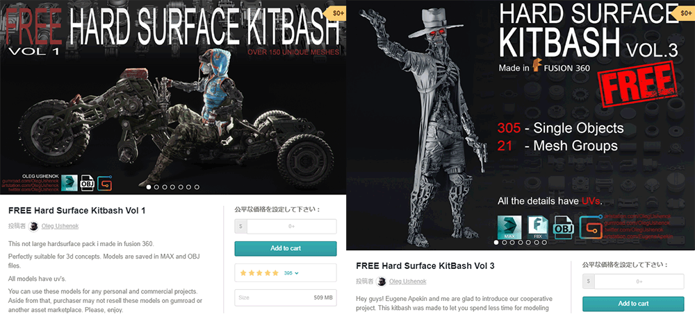 - 4.33 キットバッシュモデリングに!FREE Hard Surface Kitbash Vol 1/Vol 3 by Oleg Ushenok