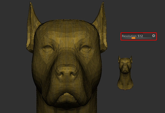 DynaMeshの解像度を定義し、モデルの全体的なポリゴン密度を制御します。