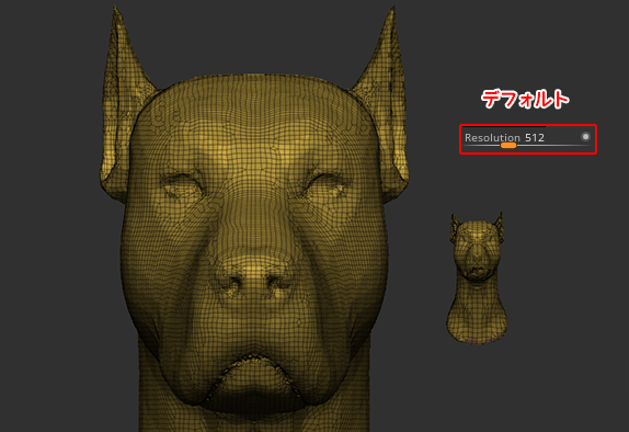 ※ZBrush2022では小さいサイズでも高解像度でリメッシュ出来るオプションが追加されました(後述