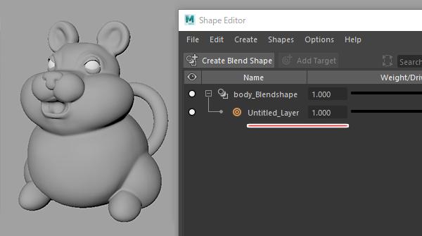 レイヤーの名前がブレンドシェイプの名前として使用され、強度の値が引き継がれます。