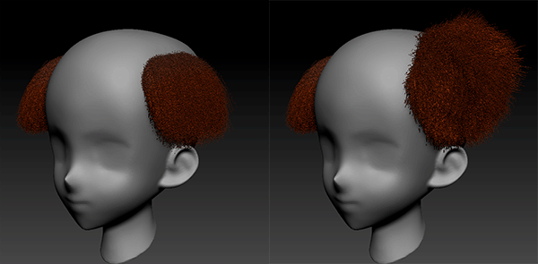 Groomerブラシと似ていますが、Fiberへの影響がより強いです。根元以外は全て影響を受けます。