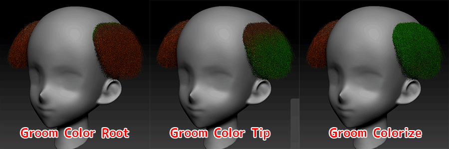 他にも先端のカラーを変えるGroom Color Tipや根元や先端問わずカラーを変えられるGroom Colorizeがあります