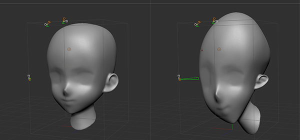 ビューの角度をかえて、操作することで2軸の変形も可能。