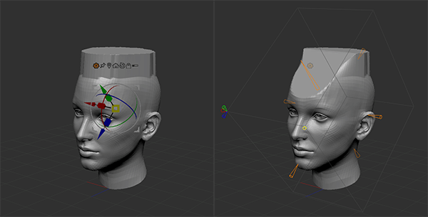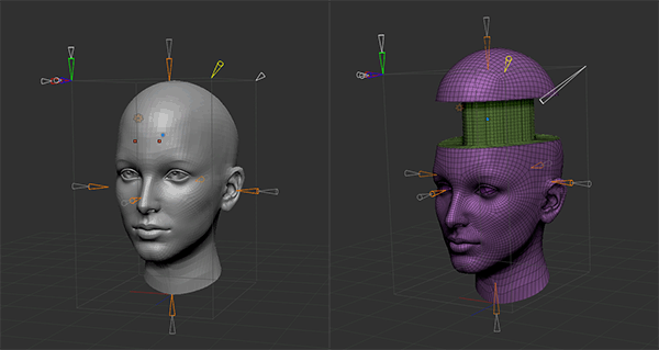 - Extender: 選択したバウンディングボックス軸に沿って挿入されるポリゴンのループの長さを定義します