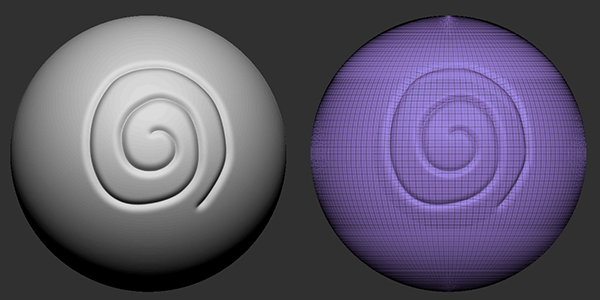 Undo Historyタイムラインを使用して、モデルにスカルプトされたディテールをキャプチャし、ブラシストロークを使用してそれらのディテールを全く別のモデルに投影することができるブラシです。