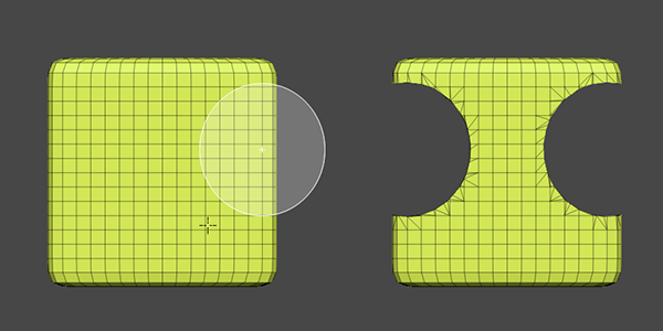 - KnifeCircleやKnifeRectをメッシュの内側に持って行っても穴をあけることはできません。