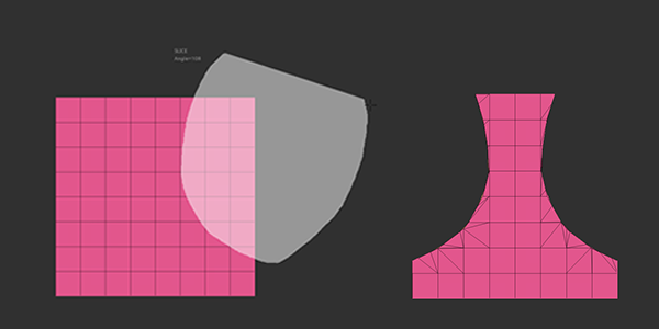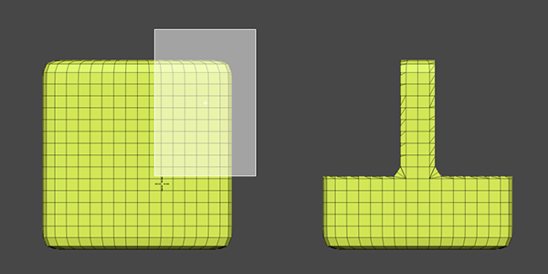- 断面は四角形で生成されますが新しいトポロジーと古いトポロジーが交わる部分には、いくつかの三角形ポリゴンがが作成されます。回避不可です。