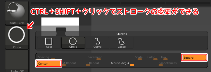 するとCTRL+SHIFTで操作するブラシのみが表示されます