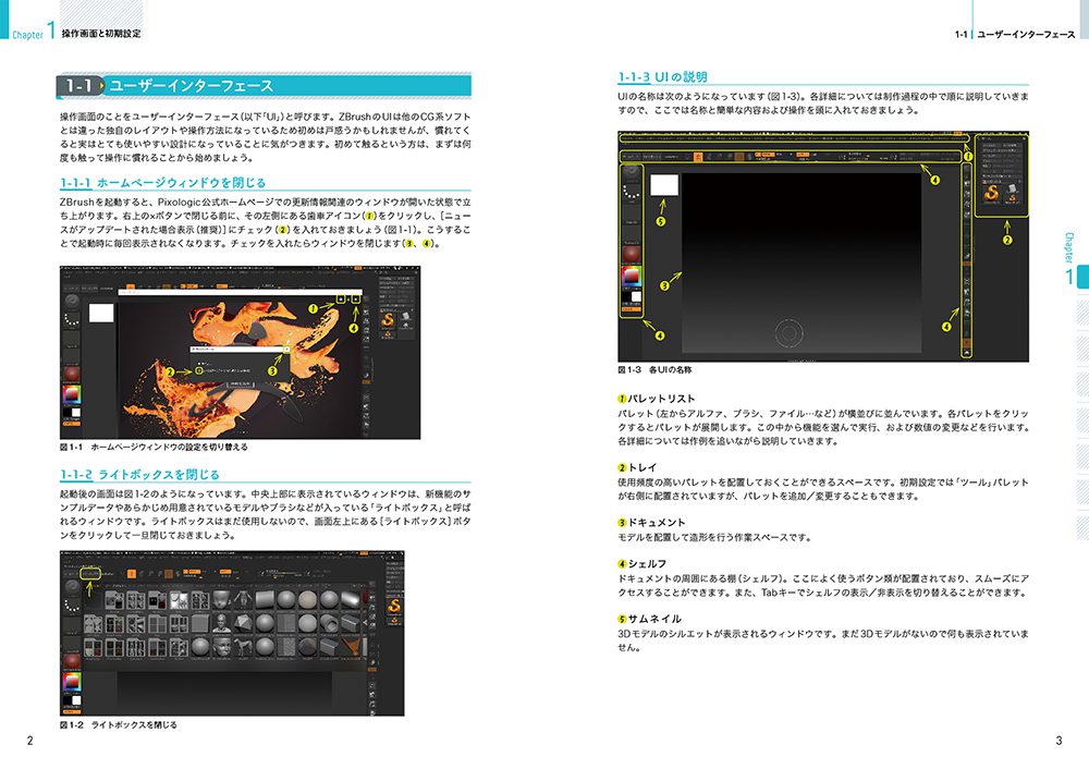 この書籍で初めてZBrushを触る人にも安心の構成になっています。