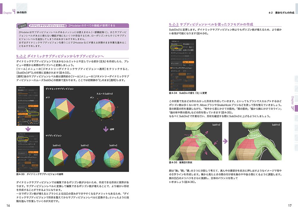 機能解説の他、スカルプトのポイントも段階的に解説されているので迷うことなく作業を進めることが出来ます。
