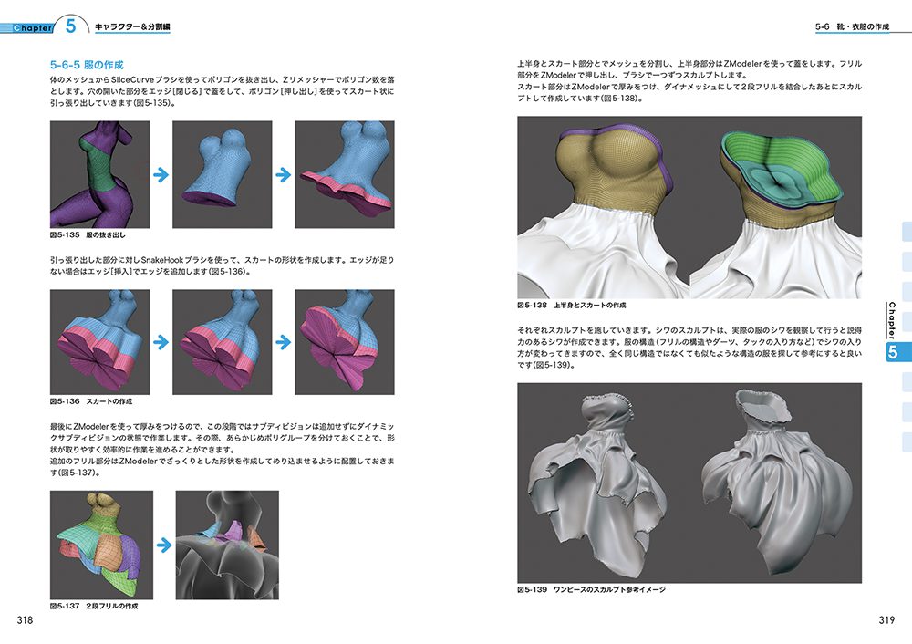 を使って形にしていく等々、とにかくZBrushの機能が広く網羅されています。