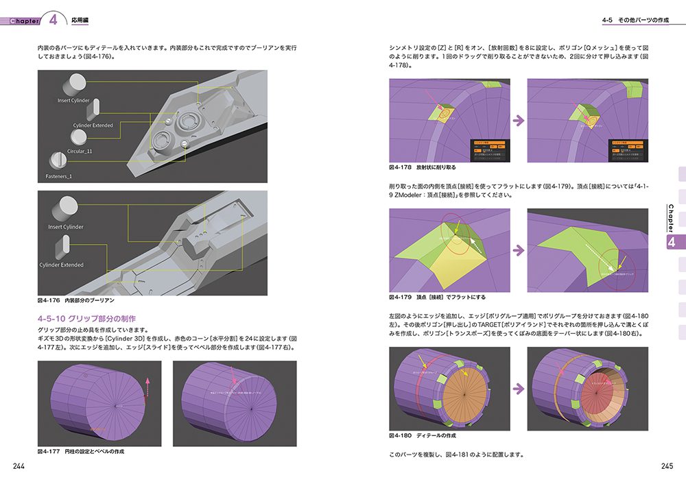 こちらはZBrushの機能を幅広く使ってハードサーフェスを作成していく書籍です。