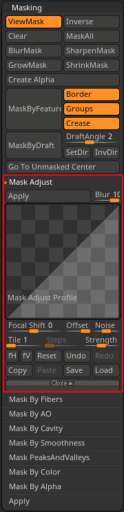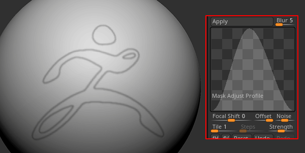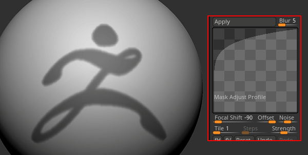 BlurスライダーとMask Adjust Profileカーブの設定に応じてマスクを調整します。