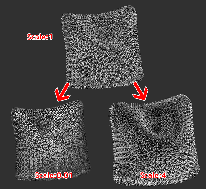 • FitオプションがONの場合、ScaleはZ軸にのみ影響し、最も低い設定ではメッシュはフラットになります。