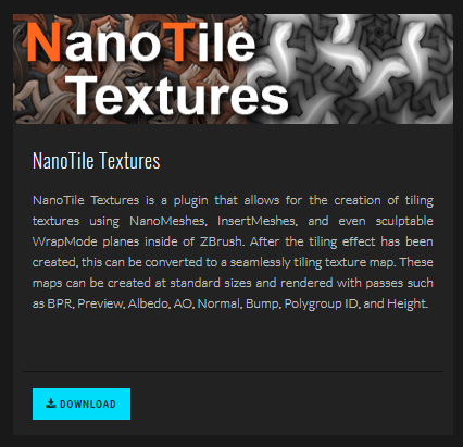 ZBrush内でNanoMeshes、InsertMeshes、さらにはスカルプト可能なWrapModeプレーンを使用して、タイリングテクスチャを作成できるプラグインです。