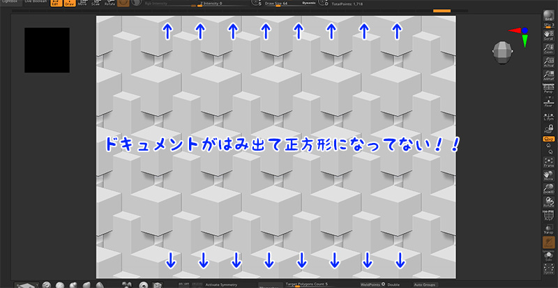 デフォルトの生成されるドキュメントサイズが画面からはみ出て、上下のタイリング結果が確認できない!!と困った場合。