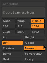 関連記事NanoMeshブラシの作り方と各設定 - 調整が終わったらGenerationカテゴリーで出力したい要素や解像度を設定してCreate Seemless Mapsを押します。