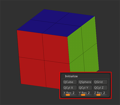 Tool>Initialize>QCubeで極の無いCubeを作成します。