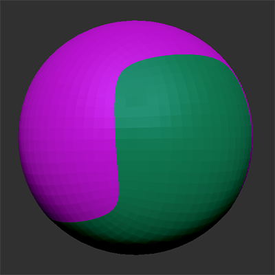 - 表示を反転させて再度ポリグループを作成、C状の2色のポリグループが作成されている状態にします。