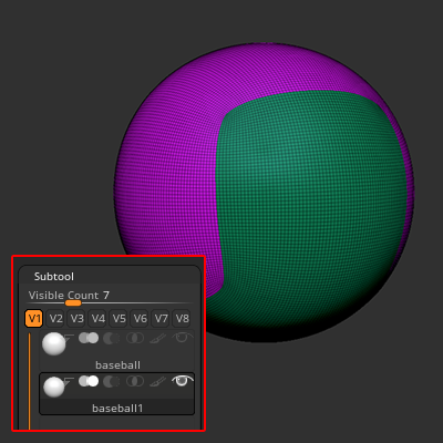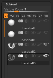 - ボールとスティッチのSubtoolを複製してSubdivideし、マージ、DelLower。