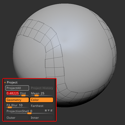 - Tool>Subtool>Project>ProjectAllでボールにフィットさせます。