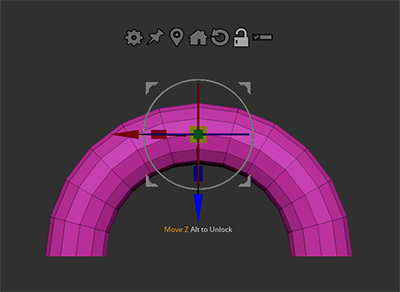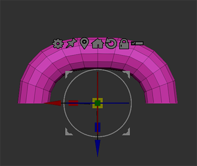 - 半分を非表示、Tool>Geometry>Modify Topology>Del Hiddenで削除、Gizmo3Dを表示した後、ALTを押しながら基点をアーチ部分に移動します