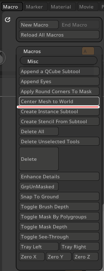 UnifyはZBrushが動作するに最適とされる状態に修正する機能です。もちろんポジションもきれいに原点になります。
