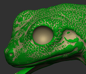 - ポリゴンの分布がより均一になるように、最高レベルよりも3つ以上下位のサブディビジョンレベルに移動します。理想的な分布を得るために、このレベルでMoveブラシ等を使い少しスカルプト。